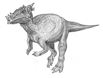 Medía aproximadamente 3 metros de largo, alcanzando aproximadamente 1,7 de altura. Exhibía un cráneo que formaba una domo de aproximadamente unos 25 centímetros de espesor.